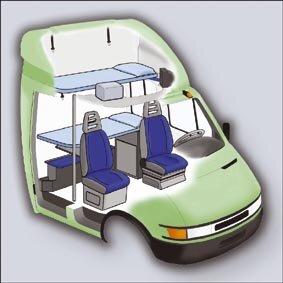 Altro disegno che rappresenta le opzioni d'uso dei furgoni pubblicizzati