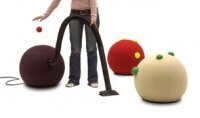 I tre pomellini che si notano sulla sfera corrispondono all'imboccatura del tubo, al pulsante di accensione e al cavo di alimentazione per far funzionare l'aspirapolvere. E' prodotto dalla Campeggi Srl (nota per arredamenti poliedrici e multifunzionali, come ad esempio Maîtresse, lampada da salotto che si trasforma in letto).