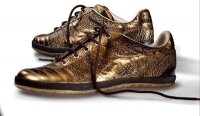 Le scarpe sono color bronzo con particolari in oro e suola marrone scuro, e saranno disponibili soltanto a partire dalla prossima stagione autunno inverno 2006.